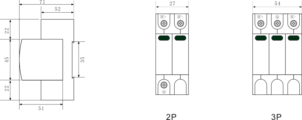 DC surge protectors typically have three wiring ports, namely V+, V -, and PE. V+is connected to the positive pole of the DC system, V – is connected to the negative pole, and PE is connected to the ground wire.
