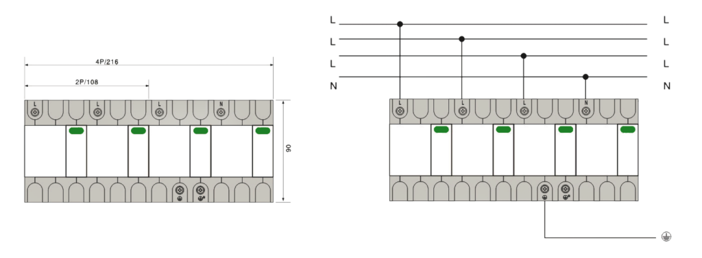 ★ It is recommended to connect fuses or automatic circuit breakers in series at the front end of the lightning protection module.
